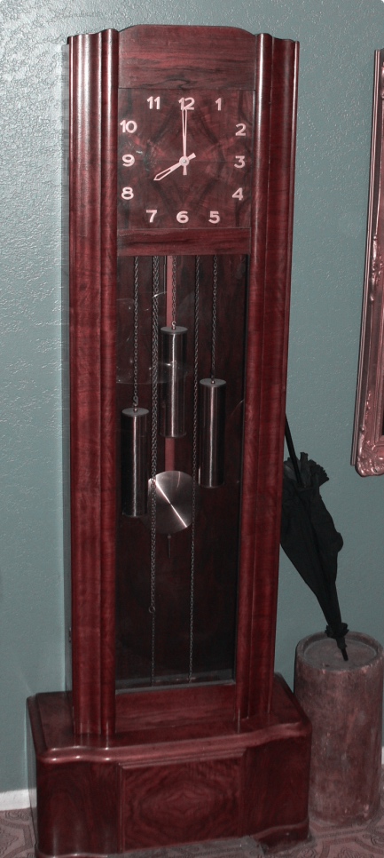 This French / Belgium Art Deco grandfather clock has been kept in good running condition. It keeps perfect time and chimes on the hour and half hour.
